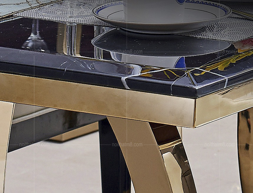 Thông tin chi tiết mẫu bàn ăn hiện đại mặt đá kết hợp chân inox 304 mạ titan cao cấp M8-4147