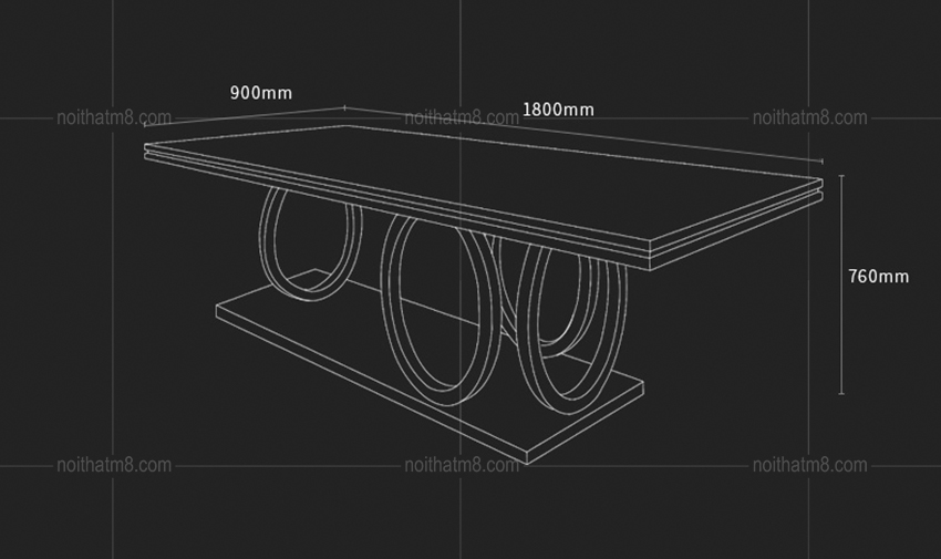 – Kích thước bàn ăn hiện đại: Dài: 1800 mm x Rộng: 900 mm x Cao: 760mm.