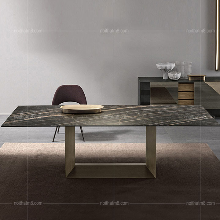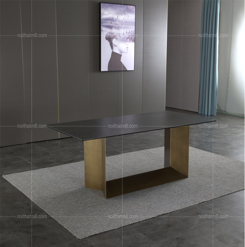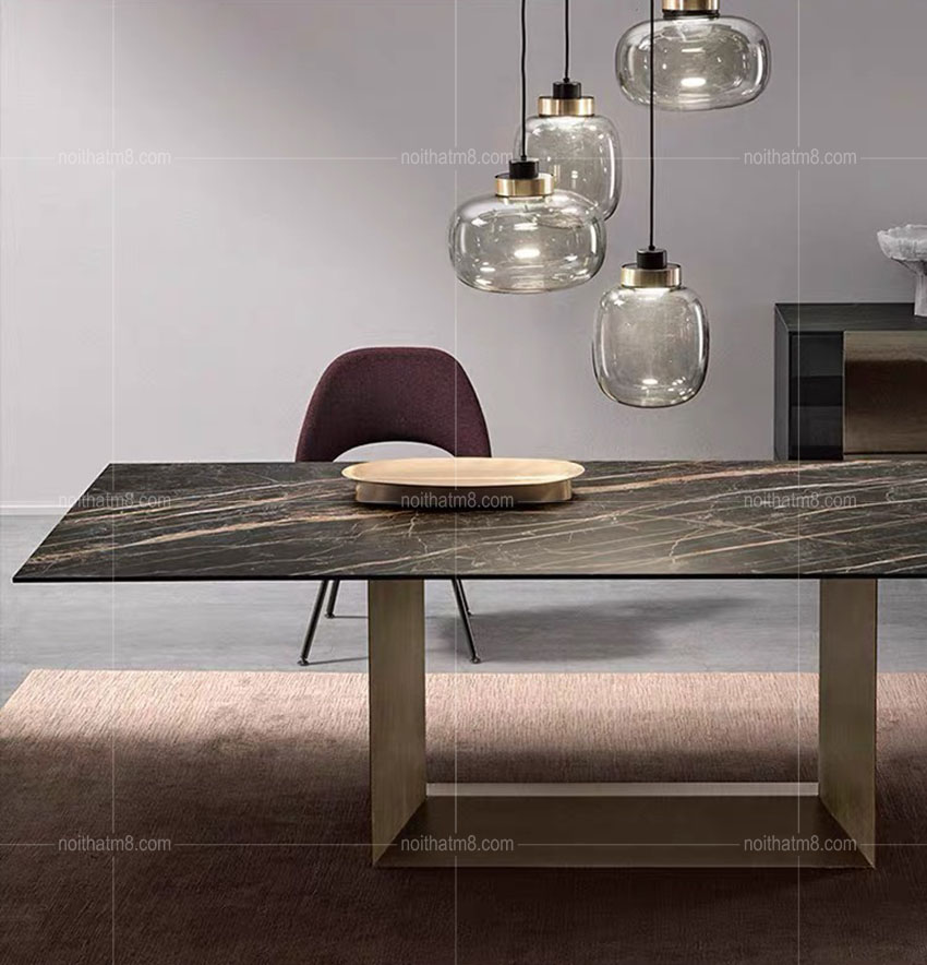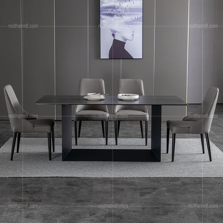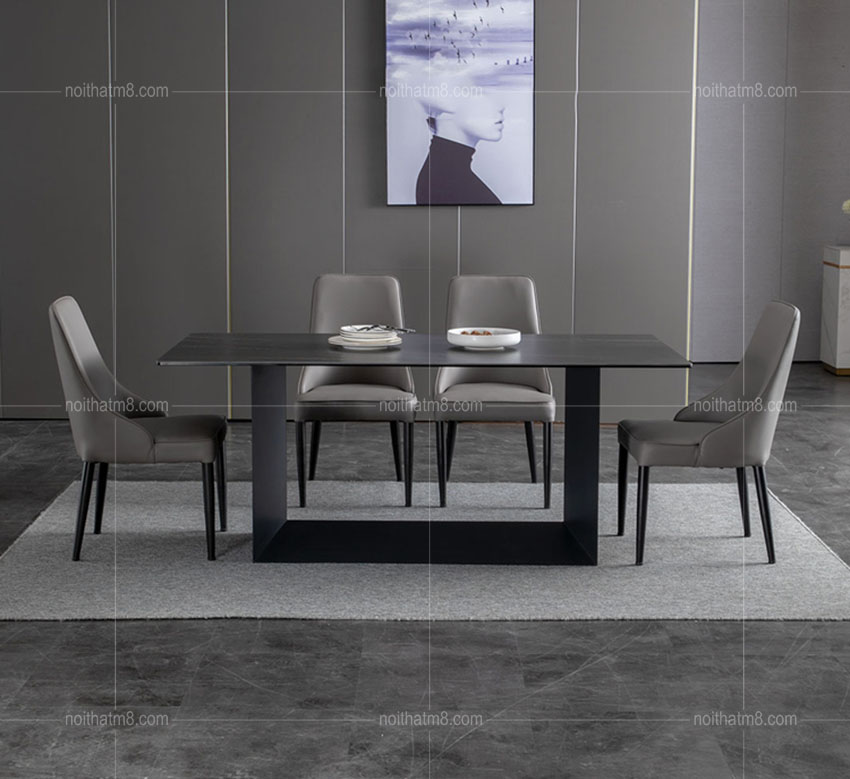 Mẫu bàn ăn mặt đá kết hợp chân sắt sơn tĩnh điện hiện đại M8-4019