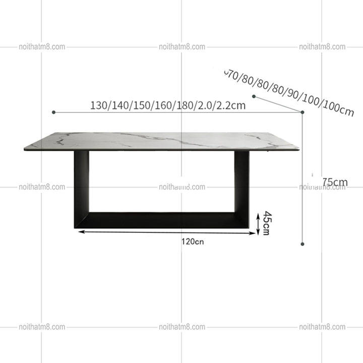( Giá trên chưa bao gồm VAT )Mô tả sản phẩm bàn ăn mặt đá kết hợp chân sắt sơn tĩnh điện hiện đại M8-4019