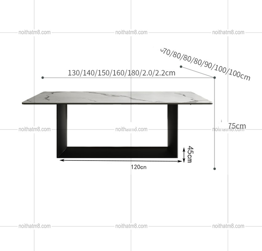 + Có nhiều mẫu kích thước bàn khác nhau để khách hàng lựa chọn sao cho phù hợp với từng không gian của mỗi khách hàng.