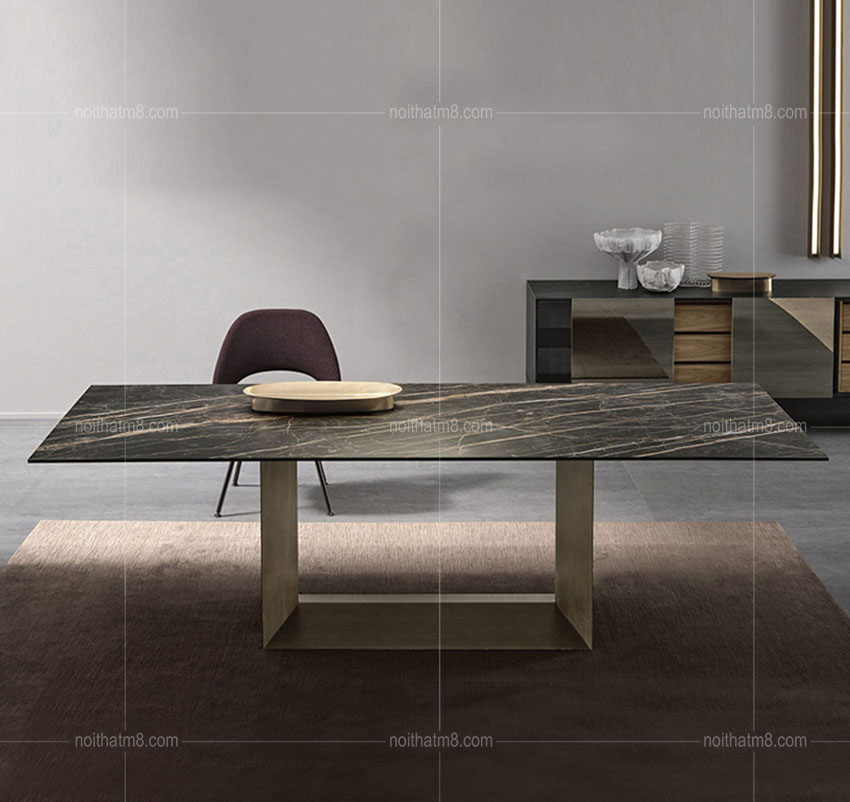 Về thiết kế sản phẩm bàn ăn mặt đá kết hợp chân sắt sơn tĩnh điện hiện đại M8-4019