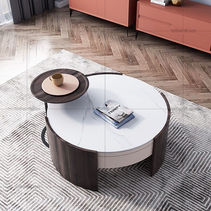 Hiện nay, các mẫu bàn trà tròn ngày càng trở lên phổ biến và được rất nhiều khách hàng yêu thích và lựa chọn bởi tính tiện dụng, thiết kế hiện đại cùng vẻ đẹp mới lạ mà nó mang lại. Sự xuất hiện của mẫu bàn trà mặt đá kết hợp với gỗ tinh tế M8-4212 của nội thất M8 làm cho người dùng cảm thấy đầy hứng thú trong việc trang trí nhà cửa.