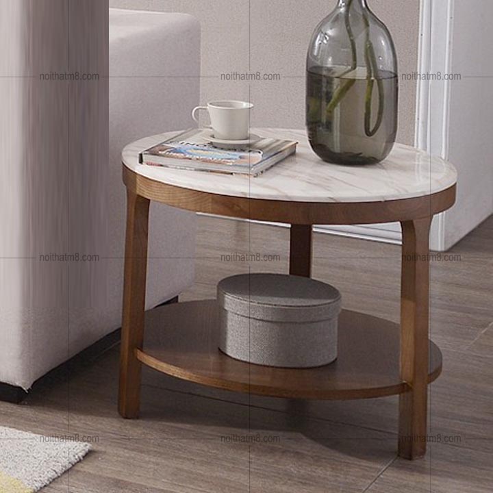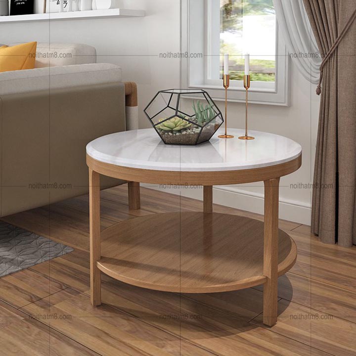 Mẫu bàn trà nhỏ xinh M8-9085 là một phần quan trọng của bộ bàn trà nhỏ dáng tròn mà Nội Thất M8 giới thiệu trước đó. Bàn được thiết kế với đường kính mặt bàn là 60cm, chiều cao bàn là 50cm với bề mặt làm từ đá tự nhiên, khung viền và chân trụ được làm từ gỗ tự nhiên.