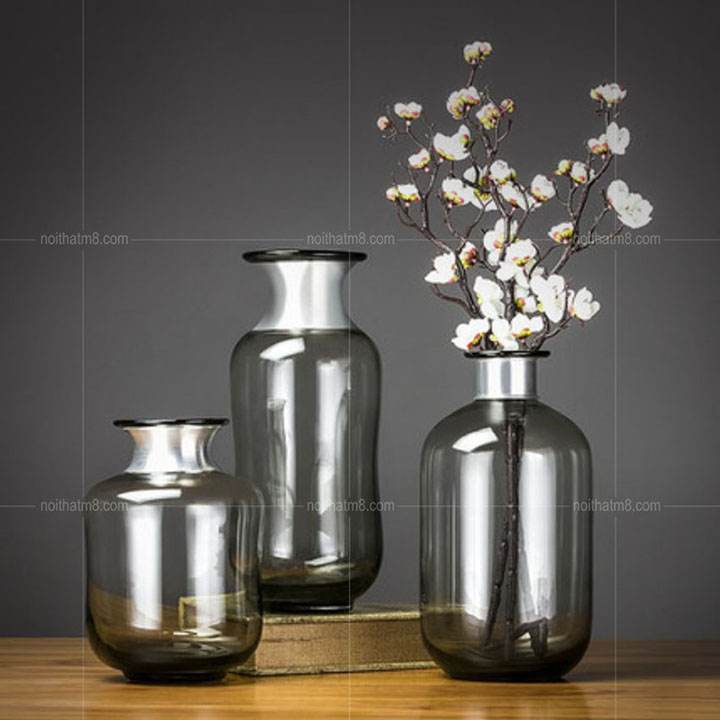 ( Giá trên chưa bao gồm VAT )Thông tin chi tiết về sản phẩm bộ bình hoa thủy tinh đen trong suốt hiện đại M8-D044