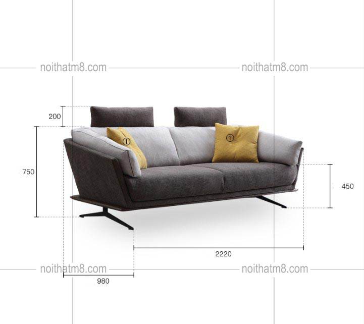 – Kích thước sofa đôi: Dài 2220 x Rộng 980 x Cao 750cm