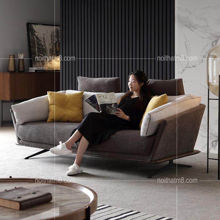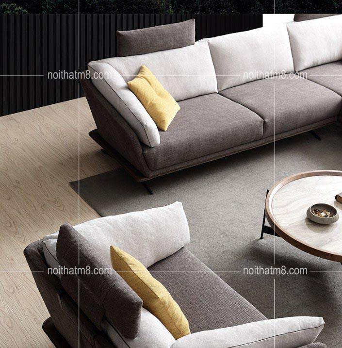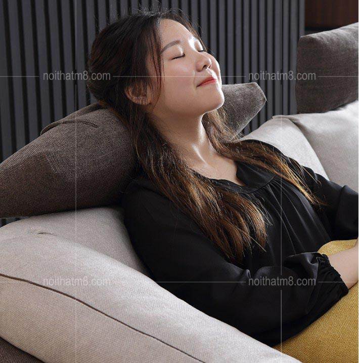 Trong mẫu ghế sofa hiện đại phòng khách của Nội Thất M8, nhà sản xuất bố trí khối nệm ngồi và nệm tựa lưng khá dày, kết cấu bền vững, chắc chắn giúp người ngồi luôn yên tâm, thả lỏng cơ thể và giải tỏa áp lực mệt mỏi khi ngồi, nằm trên ghế. Phần gối gập nhỏ của ghế gia tăng độ cao của phần tựa lưng và có tác dụng nâng đỡ phần cổ, vai, gáy khi ngồi thẳng.