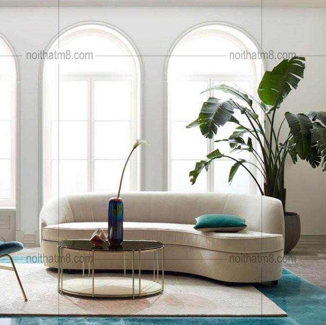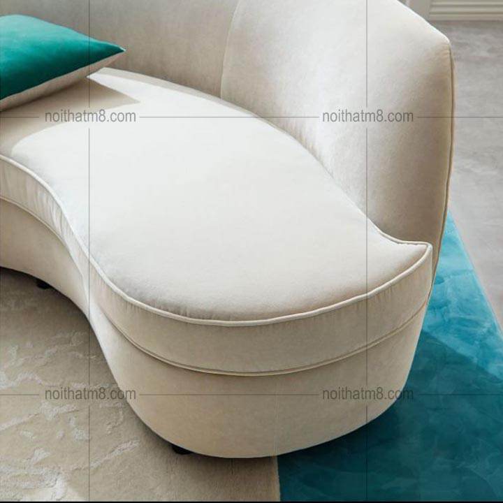 Sản phẩm ghế sofa đẹp được thiết kế theo dáng bo cong, những đường uốn cong mềm mại và uyển chuyển khiến người ta liên tưởng đến vẻ đẹp uốn lượn của những con sông đầy thơ mộng. Phần tựa lưng của ghế không quá cao nhưng luôn đảm bảo sự vững chãi, chắc chắn để người ngồi có thể tựa lưng, tựa tay thoải mái nhất.