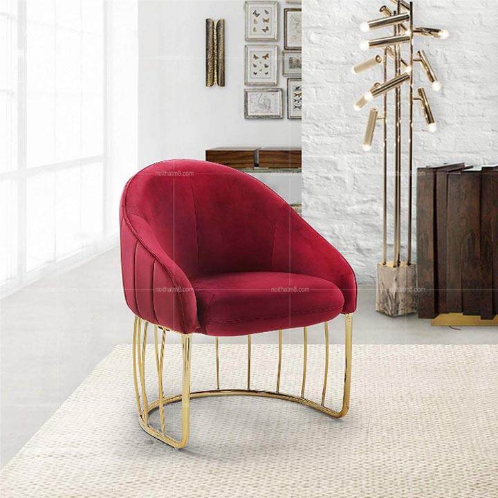 Ghế thư giãn xuất khẩu là loại ghế đơn có kích thước nhỏ xinh, kiểu dáng thanh thoát duyên dáng. Khung sườn ghế phía trong sử dụng chất liệu inox uốn nhiệt tạo hình dáng với những đường cong tinh tế. Bao phủ khung ghế là đệm mousse với độ dày vừa đủ để tạo cảm giác êm ái, mượt mà. Ngoài cùng là lớp vải nỉ nhung phủ thoáng mát, không gây cảm giác bí bách khó chịu cho người ngồi. Phần inox 304 mạ titan cao cấp nổi bật với tone màu vàng bóng cùng độ bền chắc, cứng cáp và có sức chịu lực cực tốt. Chân ghế thư giãn sang trọng được thiết kế dạng bo tròn với các thanh inox tròn tạo khung nan đẹp hút mắt người nhìn. Mẫu ghế thư giãn xuất khẩu sở hữu phần tựa lưng cao, chắc chắn và êm ái. Tựa lưng được nối liền với tựa tay theo chiều dốc xuống giúp người ngồi thoải mái kê đặt tay khi ngồi. Lưng ghế có những đường may xếp li kéo dài tạo điểm nhấn ấn tượng cho chiếc ghế tựa thư giãn Chikako. Sản phẩm có nhiều màu sắc giúp bạn có thể lựa chọn được màu phù hợp bàn trà, bàn tròn cafe, kệ tivi hiện đại, thảm trải sàn… để vừa đọc sách, xem tivi vừa thưởng thức những đồ uống thơm ngon ngay tại phòng khách.
