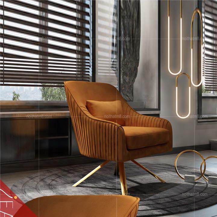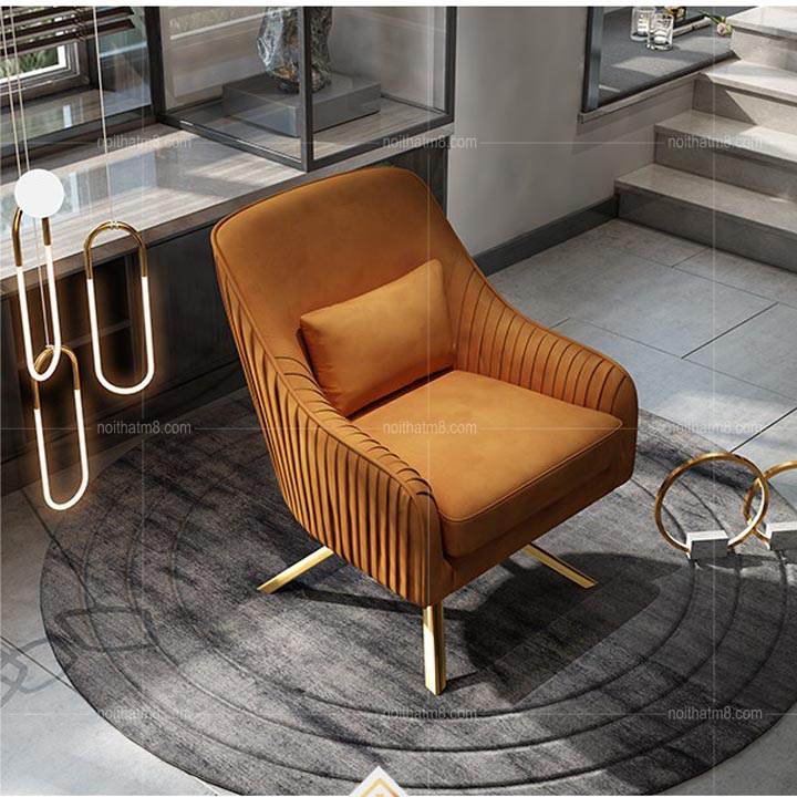 Mẫu ghế thư giãn đẹp sở hữu vóc dáng sang trọng. Phần chân trụ của ghế được làm từ inox 304 mạ titan cao cấp với dạng chân xòe tứ trụ giúp giữ vững sự cân bằng, vững chắc, mang đến sự yên tâm cho người ngồi. Phần nệm ngồi là dạng nệm mousse cao cấp chống xẹp lún, có độ đàn hồi vừa phải giúp người ngồi luôn thoải mái, dễ chịu mỗi khi sử dụng. Riêng phần vải nỉ nhung bao bọc bên ngoài ghế được đánh giá rất cao về độ bền bỉ, tạo cảm giác mềm mịn dễ chịu khi tiếp xúc.