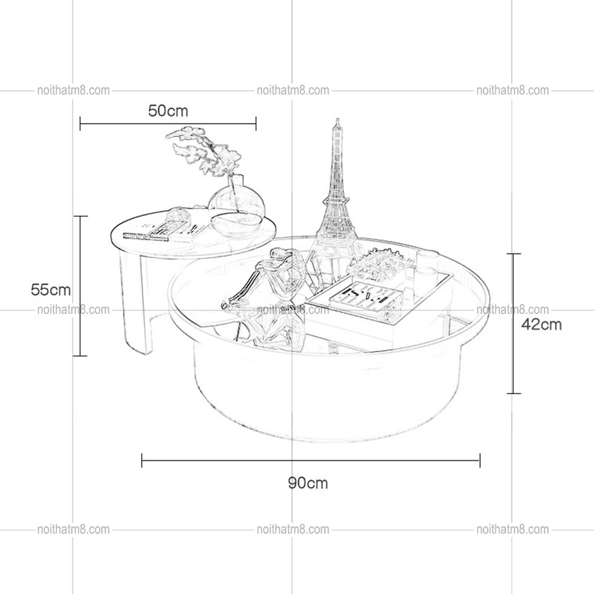 – Kích thước bàn tab (bàn nhỏ): R: 50 cm x C:55 cm