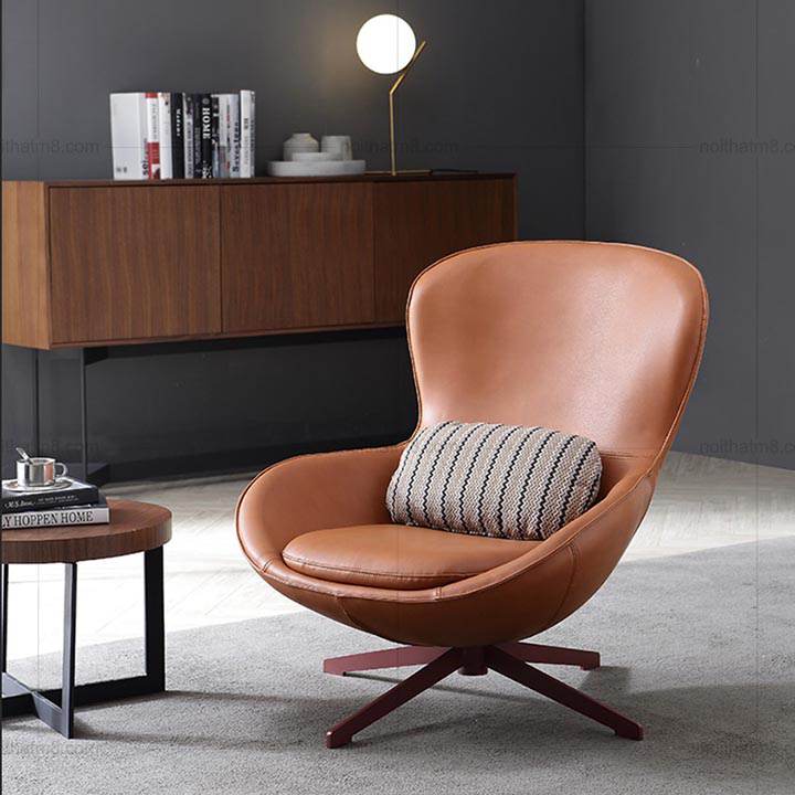 Với vẻ ngoài thân thiện, màu sắc nhã nhặn sản phẩm mang đến sự gần gũi cho người sử dụng và phù hợp với nhiều không gian khác nhau trong gia đình. Thiết kế có vẻ ngoài được chau chuốt với nhiều đường cong mềm mại, tinh tế; chiều sâu ghế lý tưởng ôm trọn lấy cơ thể người dùng tạo cảm giác dễ chịu. Ngoài ra, sản phẩm ghế tựa thư giãn này được làm từ chất liệu da tự nhiên cao cấp, cho cảm giác mát tay, mịn màng khi tiếp xúc. Phần chân ghế là chân sắt được phun sơn tĩnh điện có thiết kế vững chắc và có chức năng xoay tiện dụng trong quá trình sử dụng.
