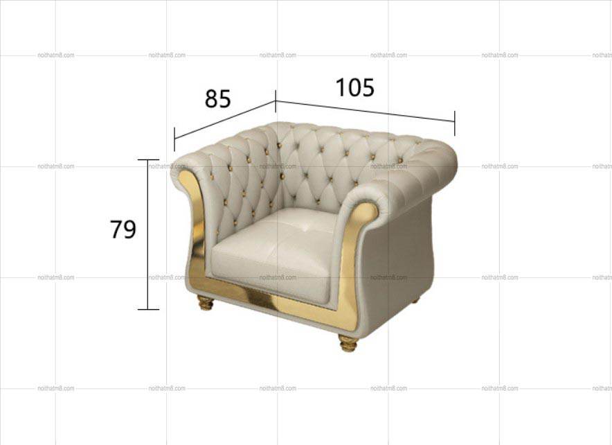 – Kích thước ghế sofa đơn: D:105 cm x R: 85cm x C: 79cm