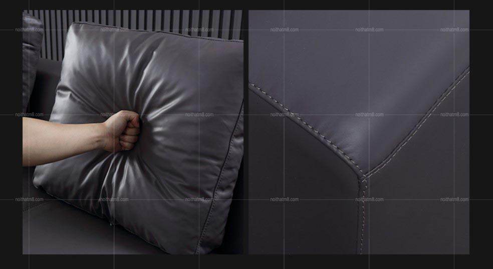 Bao bọc bên ngoài lớp nệm của ghế sofa hiện đại chính là lớp bọc da cao cấp. Khác với các mẫu sofa da công nghiệp, sofa da của Nội Thất M8 được làm từ chất liệu da cao cấp đã được xử lý tinh xảo. Chính nhờ lớp bọc da  này, chiếc ghế sofa càng trở nên giá trị, sang trọng và đẳng cấp hơn bởi vẻ đẹp sáng bóng, mềm mịn và luôn tạo cảm giác thoải mái cho người sử dụng.