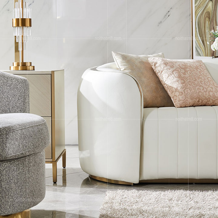 Bộ sản phẩm ghế sofa da chính là gợi ý tuyệt vời cho mọi không gian phòng khách. Sản phẩm được thiết kế theo nhiều kích thước khác nhau đảm bảo phù hợp với nhiều không gian từ không gian hẹp đến rộng. Điểm nhấn nổi bật của mẫu sofa da M8-3618 được nhiều khách hàng yêu thích bởi thiết kế độc đáo, gam màu trắng cá tính, sang trọng kết hợp với đường viền inox 304 mạ titan vàng bóng góp phần tạo nên sản phẩm độc đáo của thương hiệu nội thất M8.