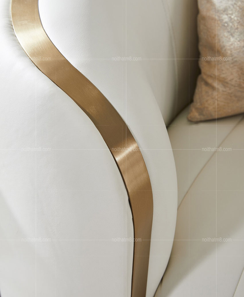 Mẫu sofa da kết hợp viền inox 304 mạ titan cao cấp M8-3618